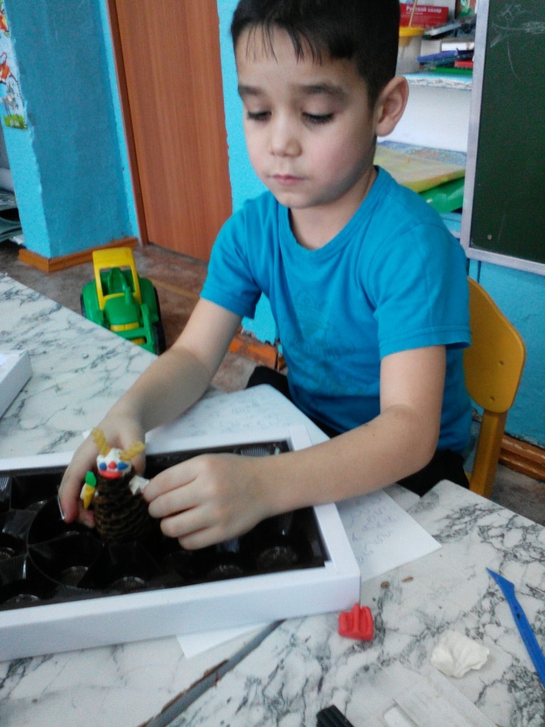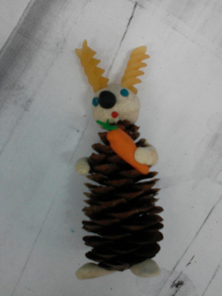 19.01.2016 г. в ГКП воспитатель Шупикова А.Е. провела творческое занятие по лепке с применением природного материала. Забавные и милые зайчата из шишек и пластилина с макаронными ушками получились у воспитанников. Во время лепки дети активно придумывали имена своим зайчатам, а также рассказывали, где их зайчата будут жить, и с какими другими животными будут дружить.