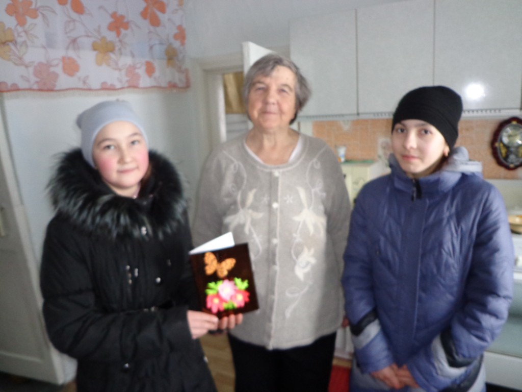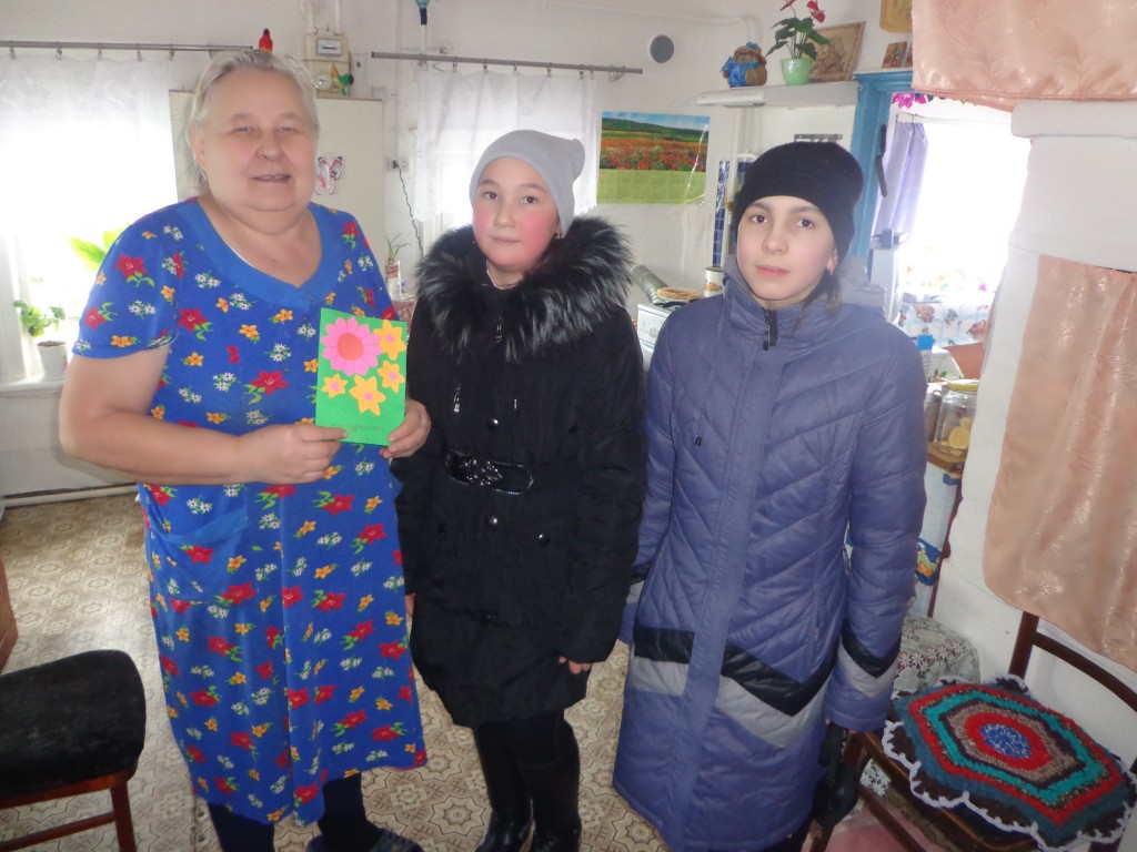 В преддверие Международного женского Дня волонтеры школы поздравили учителей и работников школы находящихся на заслуженном отдыхе с наступающим праздником и подарили им подарки сделанные руками ребят.