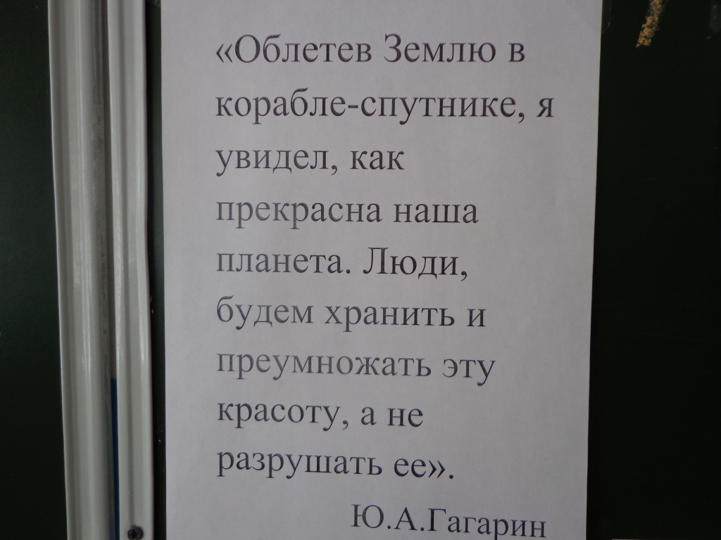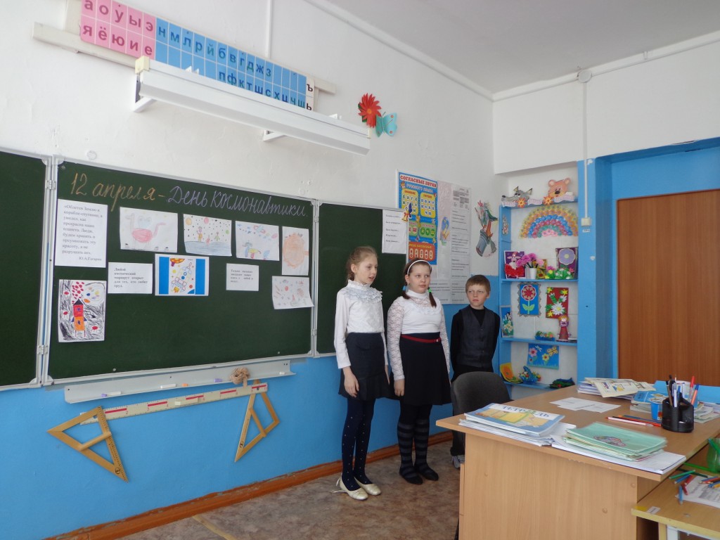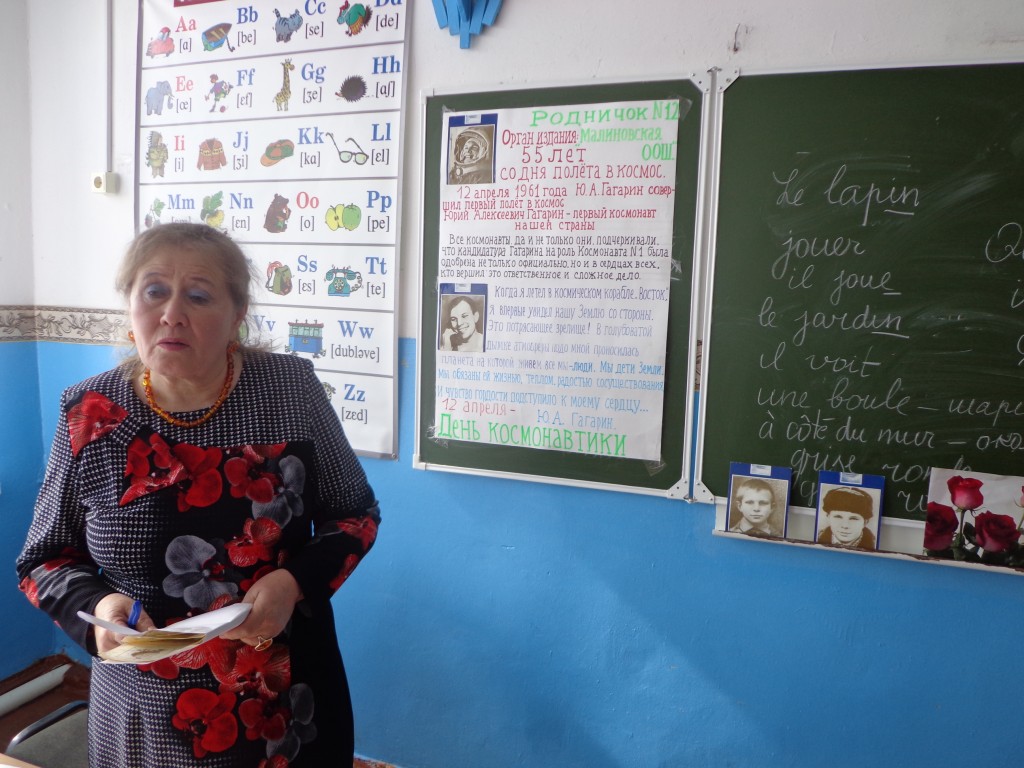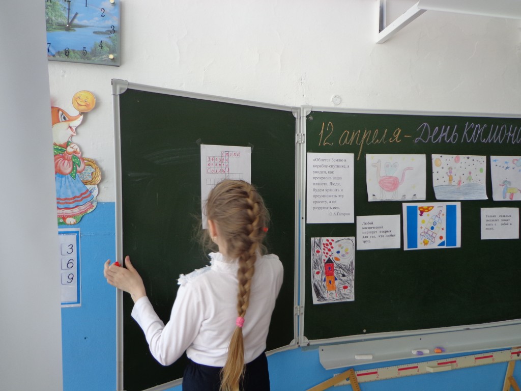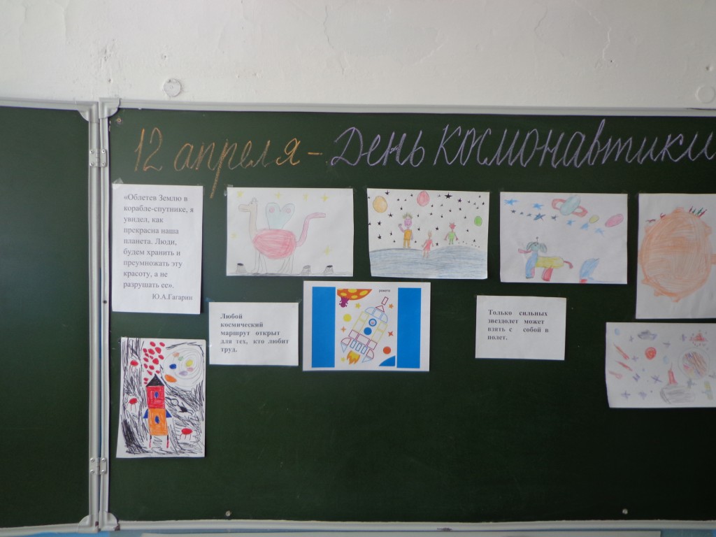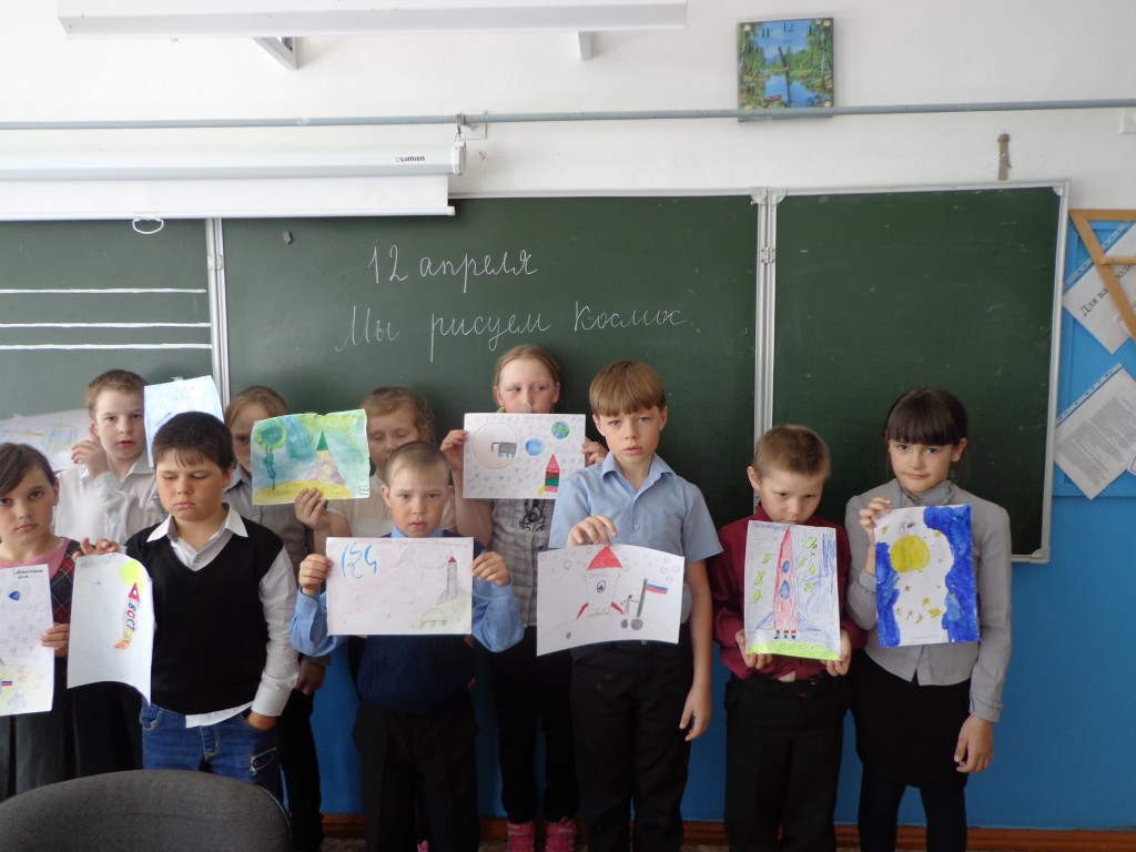 В год 55-летия Первого полета человека в космос в школе проведен Всероссийский урок им. Ю.А. Гагарина «Космос-это мы. Гагаринский урок». Учитель французского языка Гожаева Надежда Ивановна рассказала учащимся 5-9 классов о судьбе космонавта, о том, как целеустремленно он шел к своему звездному часу- полету на орбиту в космическом корабле “ВОСТОК”. Учитель начальных классов Начия Анваровна Абуталипова провела для учащихся 1,3 класса праздник-конкурс «День космонавтики». Ребята двух команд «Ракета» и «Корабль» совершили путешествие по различным станциям, выполняя различные задания: собирали ракету, отгадывали космический кроссворд, пели частушки о космосе и космонавтах. В заключении высказали свои пожелания по сохранению нашей планеты в чистоте. Ученики 2 и 4 класса с учителем Фокиной Тамарой Анатольевной подготовили выставку рисунков о космосе.