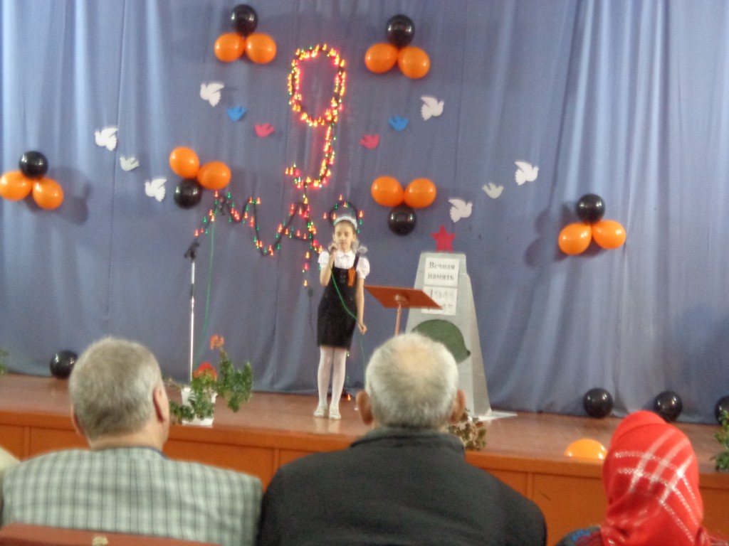 С утра над селом звучали песни Победы. Празднование началось с шествия «Бессмертного полка». Жители села, школьники и гости несли портреты своих близких и односельчан, которые завоевывали Победу на фронтах и в тылу нашей Родины. У памятника воинам не вернувшимся с фронта в почетном карауле стояли учащиеся школы. Состоявшийся митинг напомнил всем присутствующим о страшных днях войны и о радости Победы. Память о всех не вернувшихся с фронта почтили минутой молчания. Праздничные торжества продолжились в сельском Доме Культуры,где учащиеся школы показали свое умение в обращении с оружием. Работниками Дома Культуры, школьниками и жителями села была представлена литературно-музыкальная композиция «Страницы Победы». Для тружеников тыла и «детей войны» было организовано чаепитие.