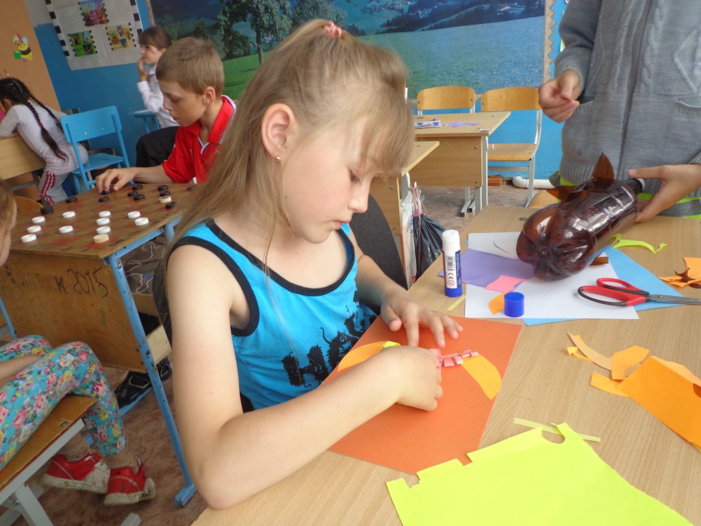 После завтрака — работа объединения «Затейник». Ребята делали поделки своими руками из подручного материала. Потом девочки показали свое искусство в деле косметологии и парикмахерском. Провели конкурс «Мисс-красавица». Каждый конкурсант представил свою модель. Кто на кружке, а кто в цветник. Хороший выдался денек! Можно прополоть клумбы и подсадить цветы, полить. Затем в гости в СДК. Там проходил шахматно-шашечный турнир. Победителями вышли Хуснутдинова Алсу и Мамадиев Айдар. Молодцы! Группа девочек занимались рукоделием в библиотеке с Ламбиной Жанной Петровной. Самым маленьким тоже нашли занятия – игры.