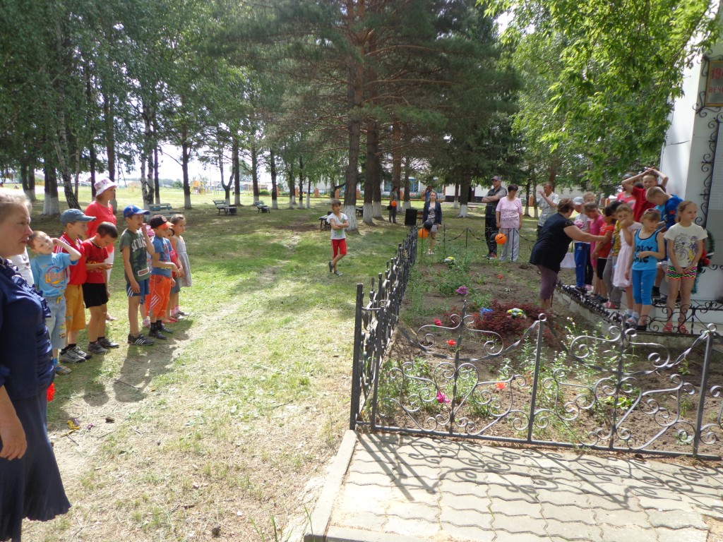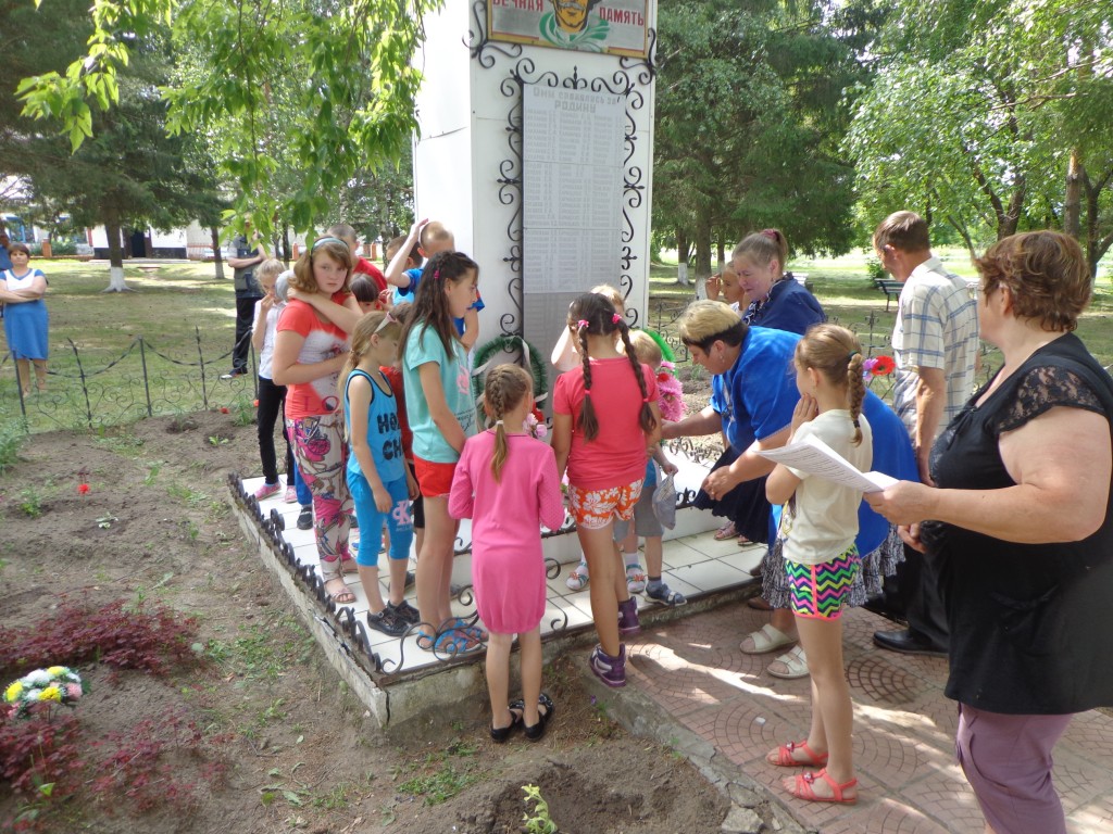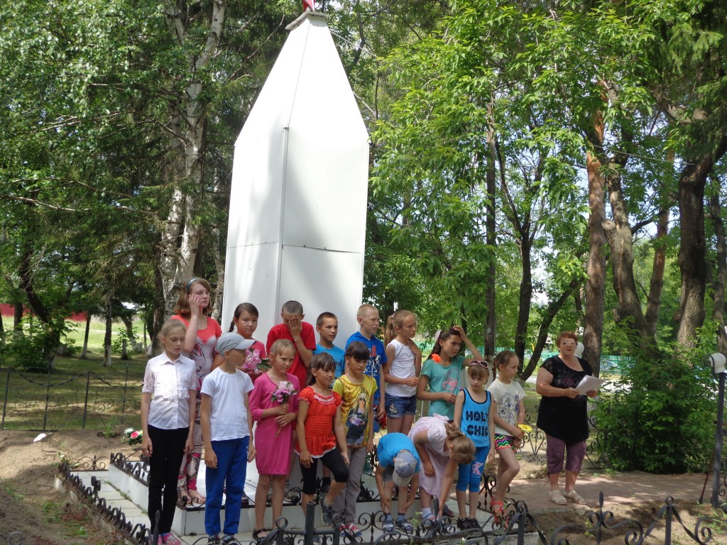 День начался с минутки общения «Правила поведения при ЧС». После завтрака – работа изостудии «Акварель». Дети рисовали рисунки на тему «Мир без войны». Подвели итоги выставки. В 10 часов жители и гости села собрались на митинг «Свеча памяти». Телевизионщики рассказали присутствующим о трагическом дне 22 июня 1941 года. После митинга в лагере прошел конкурс песен и стихов о войне. Для ребят из телестудии «Ромашка» инструктором по физическому воспитанию были проведены подвижные игры на улице.