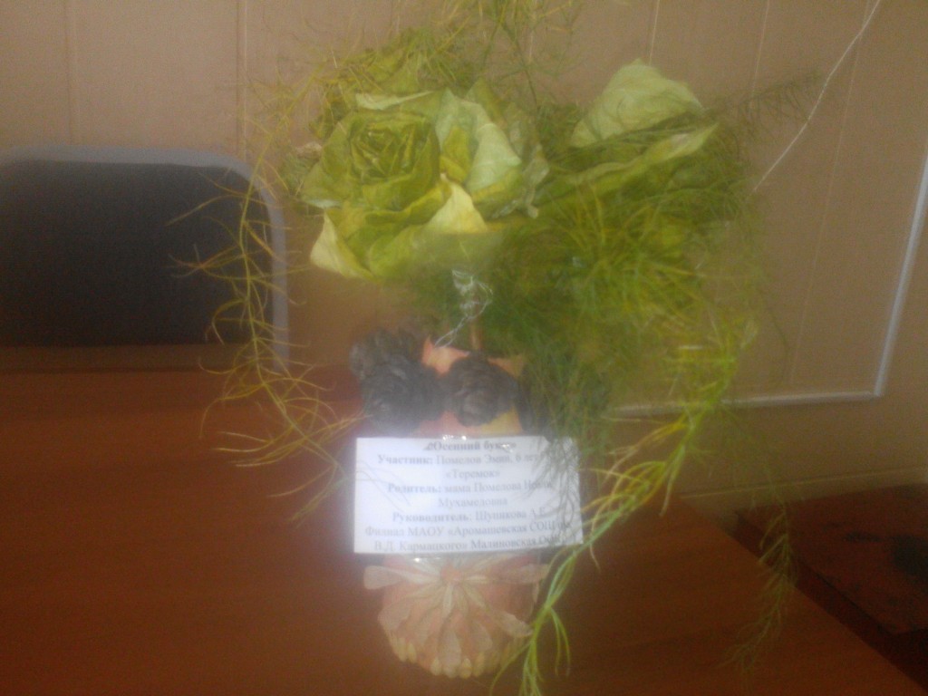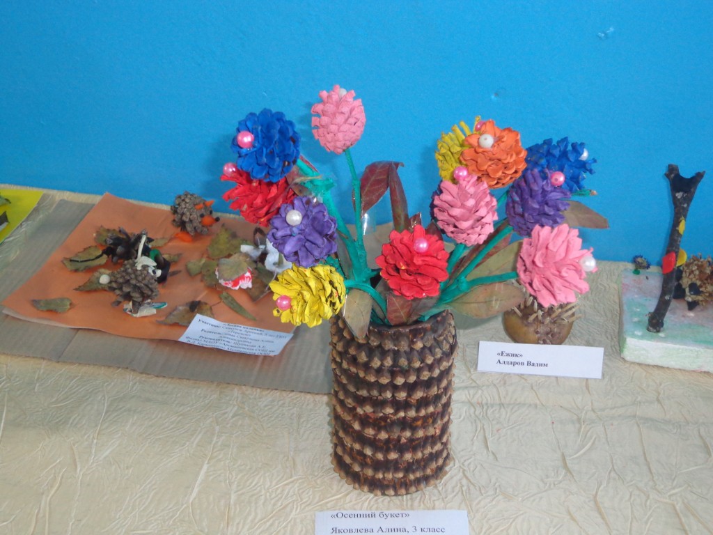 Издавна природа балует человека, не только своей красотой, но и своими богатствами. Поэты выражали свое восхищение и любовь к природе в стихах, художники передавали красоту природы в своих картинах. Ведь природа это не только окружающий нас мир, создающий условия для жизни человека, но и духовная составляющая часть самого человека, вдохновляющая его на новые открытия, изобретения, дающая толчок к творческому развитию. Поэтому мы должны ее беречь. А любовь к прекрасному, как известно, должна закладываться в ребенке с малых лет. Не всем дано видеть красоту в простом обыденном, но, тем не менее, этому можно научиться. Что и попробовали сделать воспитанники ГКП вместе с воспитателем Шупиковой А.Е.. Из простого на вид, ни чем не примечательного природного материла (шишки, листья деревьев, семена растений) воспитанники вместе с родителями под руководством воспитателя своими руками смастерили вот такую красоту. Ученики школы так же представили работы на школьную выставку «Дары осени».