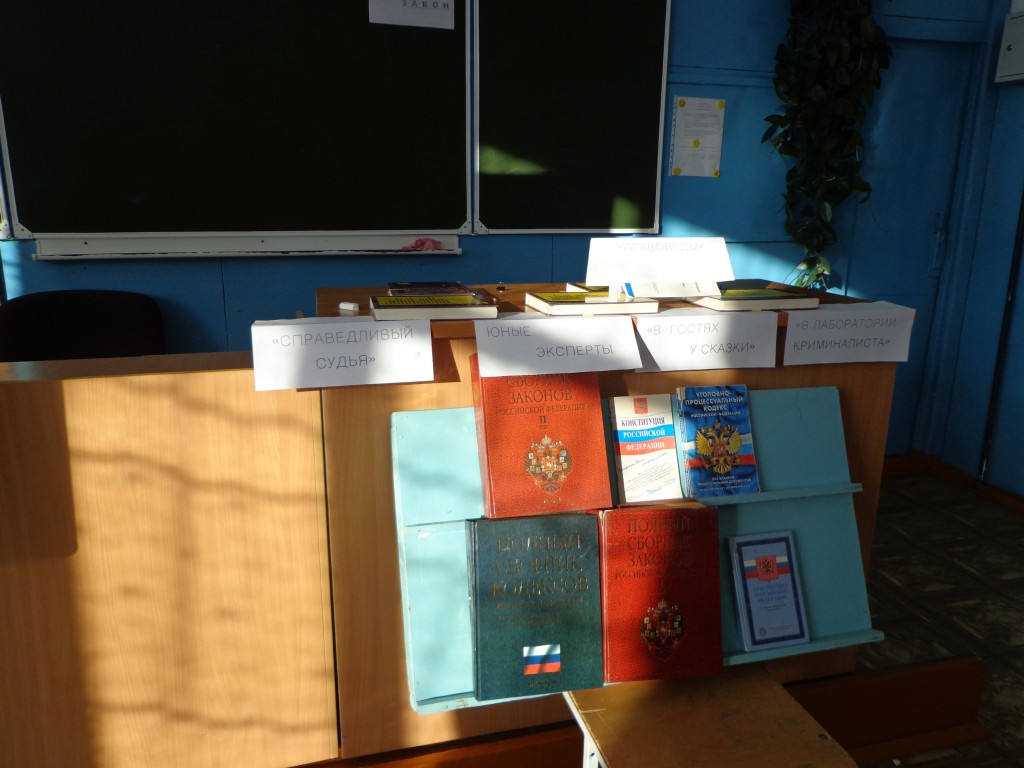 10 ноября в 5-9 классах прошел классный час «Подросток и Закон». Все учащиеся разделились на две команды: «Закон» и «Подростки». Мероприятие проходило в форме игры – соревнования двух команд. В ходе игры затрагивались вопросы по Конвенции прав ребенка, по Конституции РФ, по правонарушениям, по наказаниям. Разыгрывались ситуации, которые разрешались командами. За каждый правильный ответ команда получала жетон. По количеству жетонов выиграла команда «Закон». Для учащихся была оформлена выставка литературы по теме.