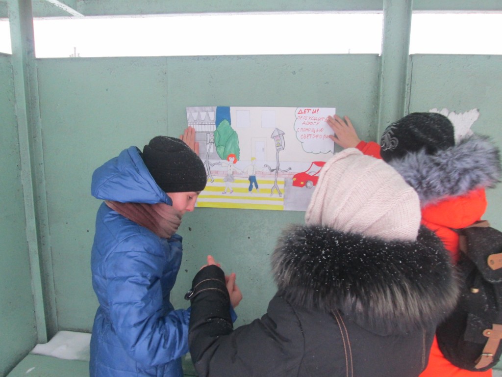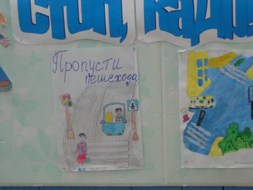 21 ноября прошла акция «Пешеход». В школе был проведен конкурс рисунков и плакатов «Пропусти пешехода!». Волонтеры вышли на перекресток с плакатами – обращениями к водителям: «Сохрани жизнь пешеходу».