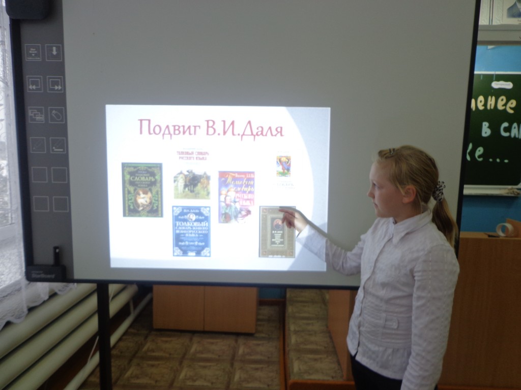 22 ноября, в день рождения В.И. Даля, в России отмечается уже ставший традиционным праздник русской словесности – День словарей и энциклопедий. Учащиеся 5,7,9 классов приняли участие в викторине«… Даля оставленный след с человечеством будет всегда». В начале мероприятия учитель русского языка и литературы Людмила Георгиевна Матаева познакомила ребят с биографией В. И.Даля. Для знакомства был представлен проект «Подвиг Даля», где ученики познакомились с ним как с писателем и поэтом. Затем две команды с азартом соревновались в различных этапах викторины. Собирали пословицы, давали лексическое значение устаревших слов уже на современный лад и наоборот. Отгадывали загадки, собранные великим деятелем, подбирали синонимы к словам. Так как с 21 по 24 ноября 2016г. во всех регионах страны проходят выставки словарей и энциклопедий с использованием дистанционных технологий, учащиеся посетили виртуальную выставку на сайте день словаря.рф « День словарей и энциклопедий». Ученики увидели многочисленное разнообразие словарей: алфавитные и идеографические, цитат и синонимов, терминов и метафор, фразеологизмов и неологизмов, абстрактных понятий и повседневных реалий, профессиональные, жаргонные и многие другие словари.