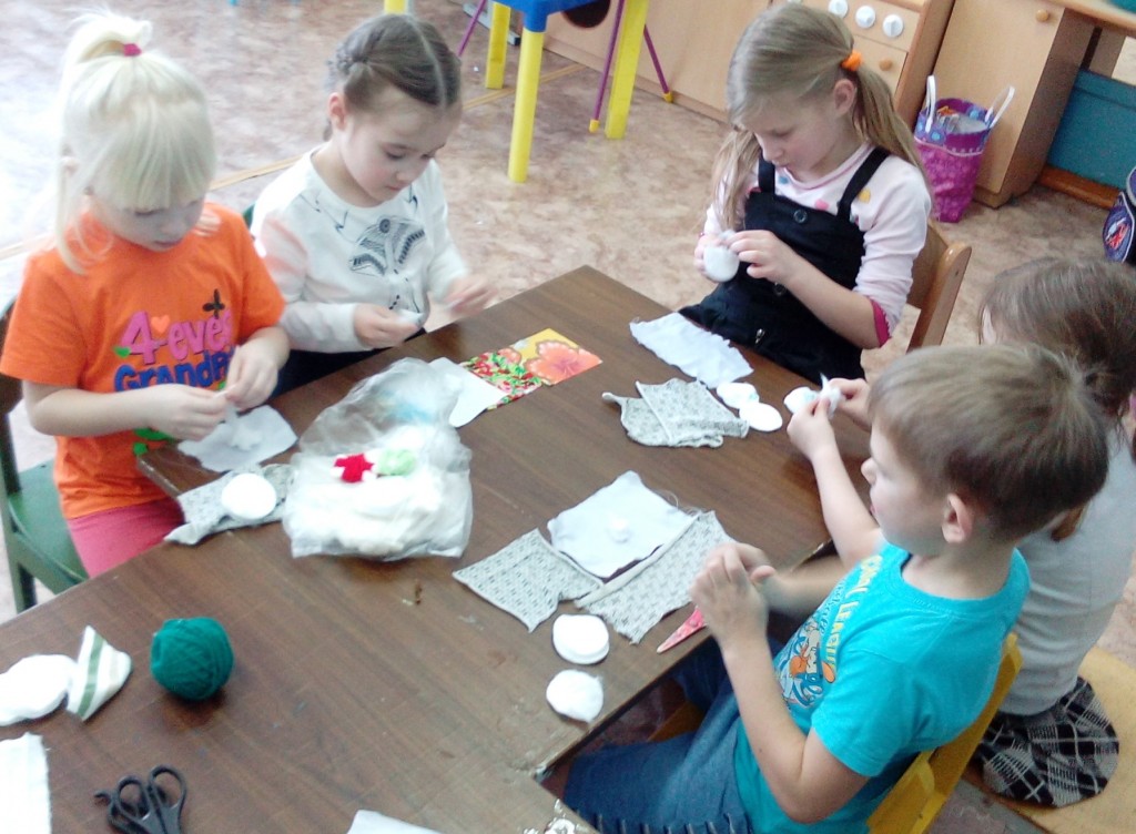 Трудно представить мир ребенка без игрушки. Сейчас полки магазинов пестрят огромным разнообразием детских игрушек. Каких игрушек только нет в детских магазинах от различных роботов, самолетиков и машин на пульте управления до больших кукол которые плачут как живые младенцы, которых надо кормить, убаюкивать. Игрушки наших родителей были не настолько инновационные, как современная игрушка, но, тем не менее, нечем не хуже современной. Конечно, у родителей современная игрушка вызывает не меньший интерес, чем у ребенка. Сам собой напрашивается вопрос, а смогла бы старая игрушка заинтересовать нынешнего дошкольника. Что и попыталась выяснить воспитатель ГКП. Ребятам было дано задние спросить у своих родителей, какими игрушками играли их родили и какая игрушка была у них самая любимая. Как выяснилось у некоторых родителей даже до сих пор сохранились игрушки их детства. Ведь раньше не было такого обилия игрушек в магазинах и поэтому дети того поколения старались относиться к ним бережно. Воспитатель ГКП Шупикова А.Е. рассказала своим воспитанникам что, наши дедушки и бабушки и прабабушки когда то делали игрушки своими руками. При этом игрушка, сделанная своими руками наделялась магическими свойствами, служила в качестве оберега, оберегала детей и дома от злых духов, от всякой нечестии. А сделать их мог даже пятилетний ребенок. Познакомила детей с традиционными русскими куклами оберегами, сделанными из цветных лоскутков и ниток без помощи иголки. Разучила с детьми две старинные игры «Барыня» и «Платок». Итогом занятия стало изготовление детьми своими руками – куклы оберега «Утешницы». Большое удовольствие ребятам доставил процесс изготовления куклы-талисмана, ведь каждый старался в нее вложить частичку душу.