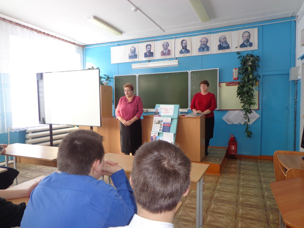 16 февраля прошла встреча с председателем муниципальной избирательной комиссии Ламбиной Н.А. «Выборы – это выбор будущего». Она рассказала ребятам о выборах, правилах выборов, кто имеет право на голосование, право выдвинуть себя депутатом. Учитель истории и обществознания Матаева Л.А. провела викторину на знания вопросов по выборам.
