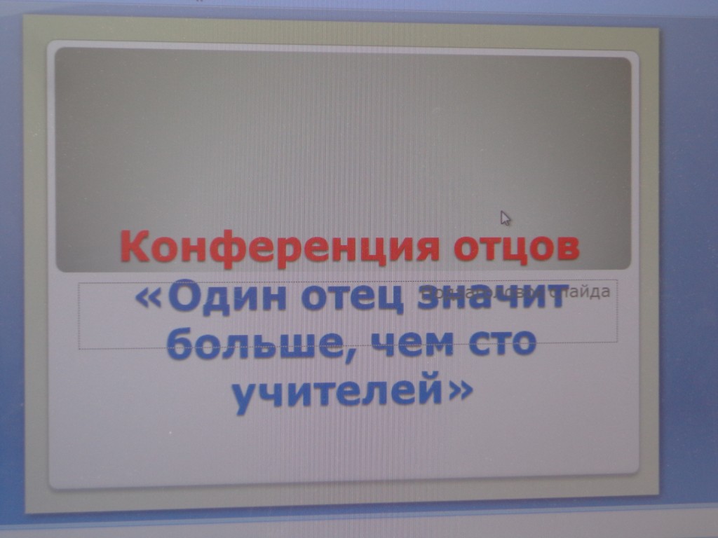 День пап в школе начался конференцией отцов «Один отец значит больше, чем сто учителей». Во время конференции были рассмотрены «вечные» вопросы отцов и детей, подведены итоги анкетирования пап.Мужчины получили поздравления с наступающим праздником. Продолжился День пап в спортивном зале, где прошла спортивная эстафета «Отцы и дети. Тяжело в учении-легко в бою». В спортивной эстафете приняли участие папы и дедушки, а также их дети и внуки. Время соревнований пролетело незаметно, а сколько радости ,смеха доставили участники болельщикам и просто зрителям. Строгое жюри было безупречным при подведении итогов впереди оказалась команда «Детей». По окончанию соревнований пап и дедушек ждал сюрприз — их фотографии с детьми и внуками, а ребят сладкие призы.