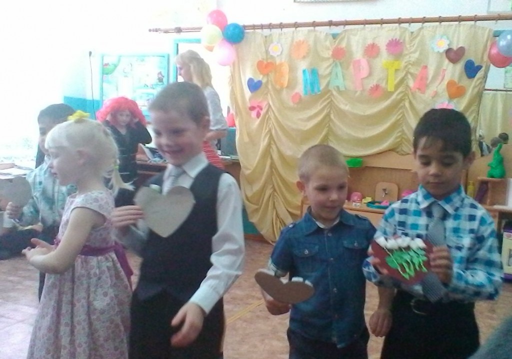 07.03.2017 г. в ГКП прошел праздник «8 марта». На праздник в группу пришла Ведьмочка, которая подготовила для мам, бабушек и девочек различные игры. А также вместе с ребятами училась, как нужно помогать дома маме и бабушке. Ребята рассказывали стихи — поздравления, показывали сценки, танцевали танцы, пели песенки для своих любимых мам и бабушек. Ну а какой же праздник без подарков, дети подарили своим мамам и бабушкам красивые открытки, сделанные своими руками.
