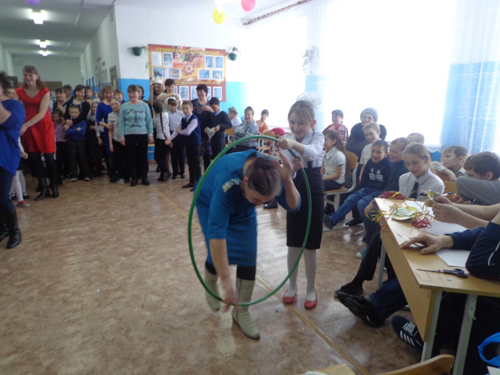 7 марта. Школа празднично оформлена. При входе — выставка детских рисунков: «С праздником, милые мамы!» К назначенному времени школу заполнили гости: мамы и бабушки. Ребята подготовили праздничное шоу: поздравления, конкурсы, викторины. Организовали две команды: мамы и дети. Все мамы и бабушки участвовали в конкурсах. В конце праздника мамы получили медали, а детям подарили по шоколадке.
